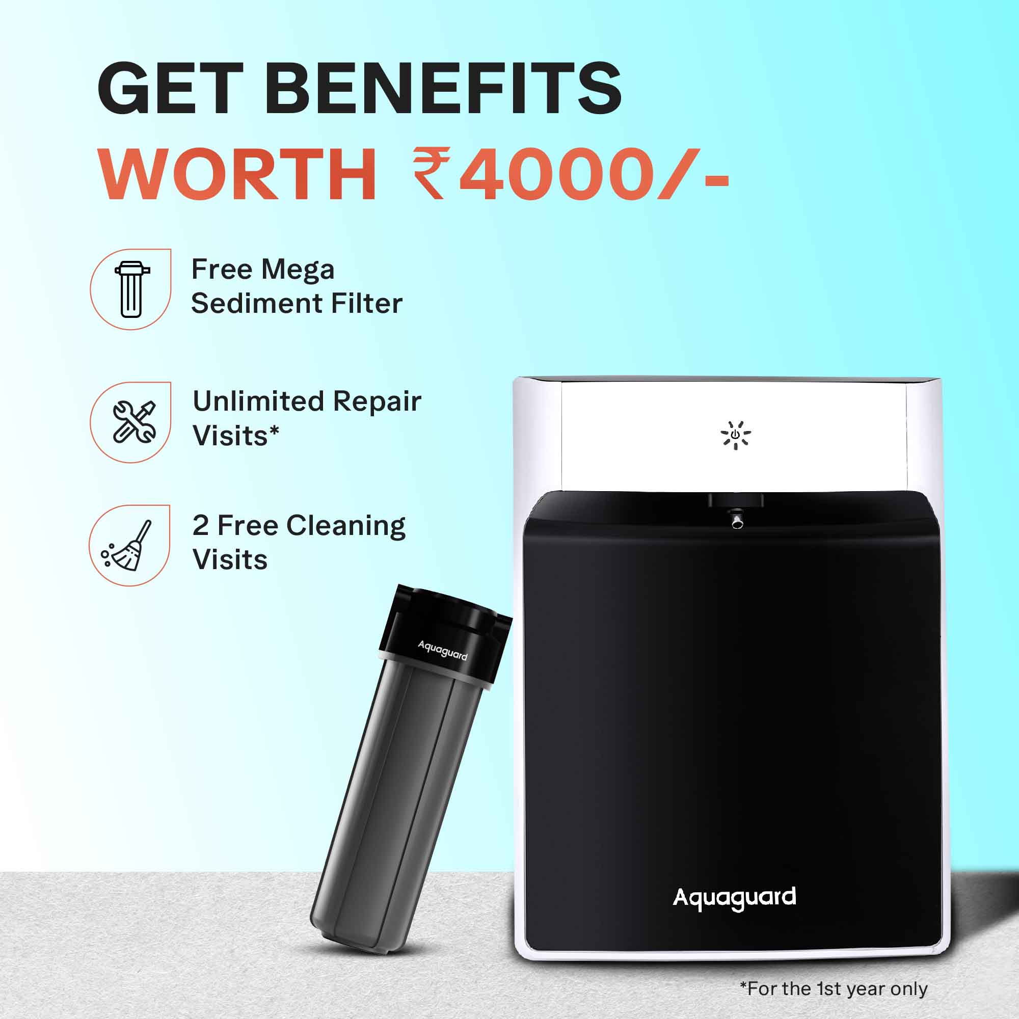 Free Service Plan worth ₹2,000 including free installation, 1 free maintenance visit and unlimited repair visits